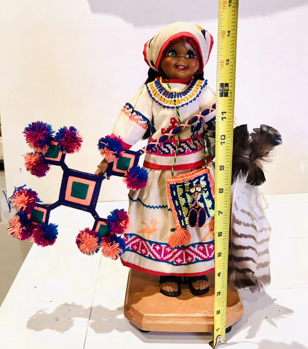 Vtg Huichol Girl Female Doll From Nayarit Traditional Garment Beads Feathers 13 Ebay